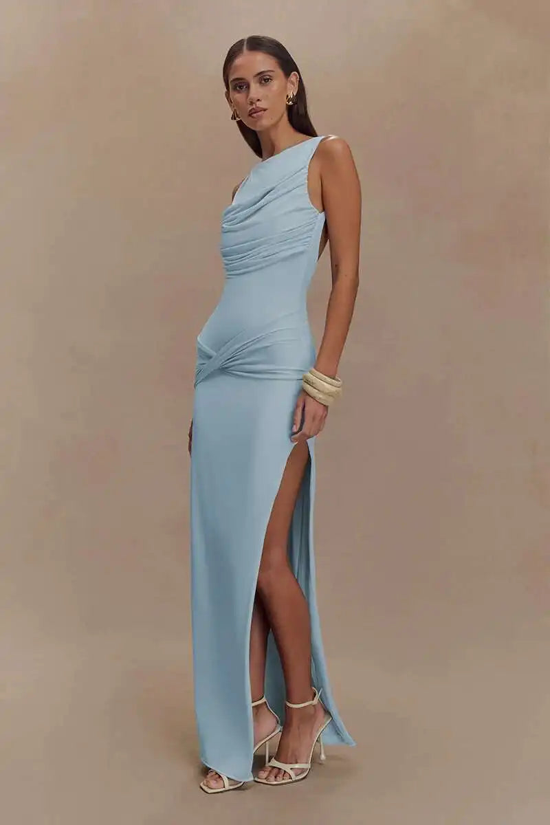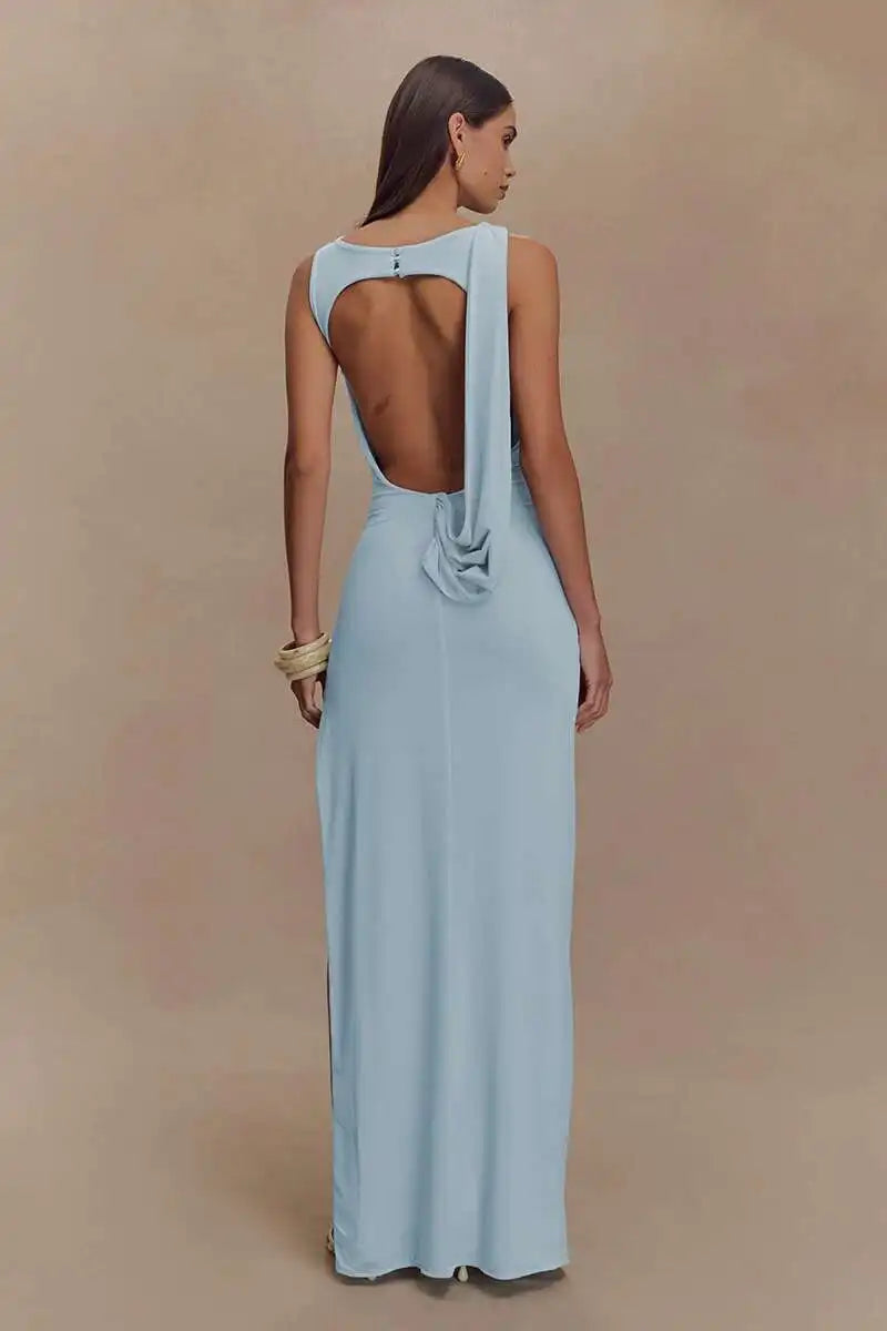 Sleeveless Pleated Bodycon Elegant Backless Maxi Dress Women - Blue / S