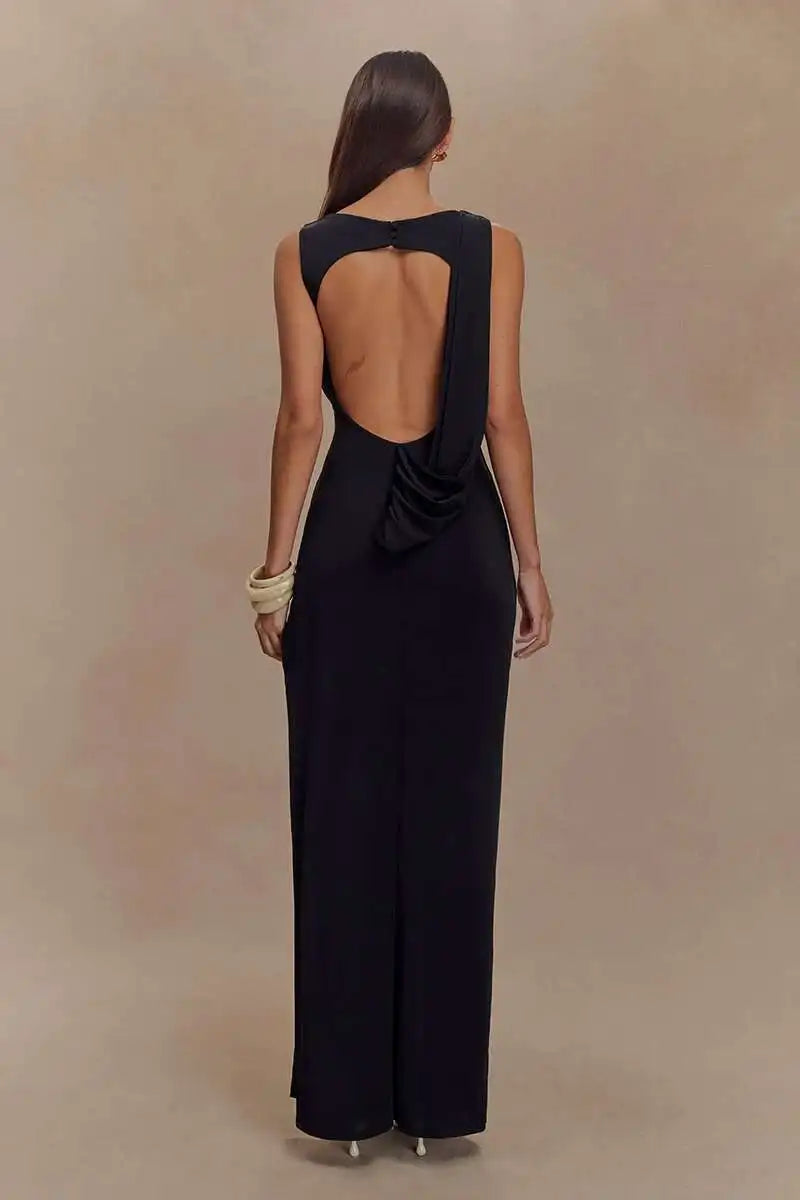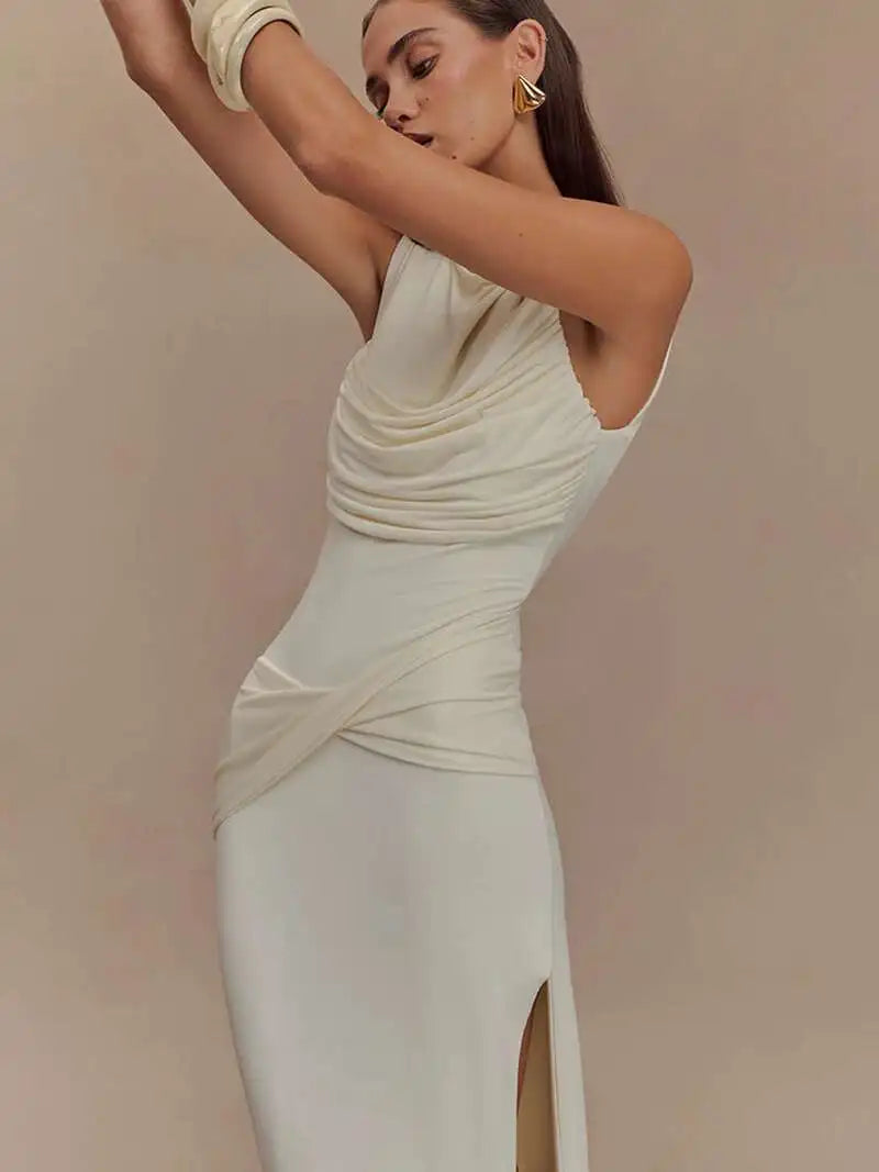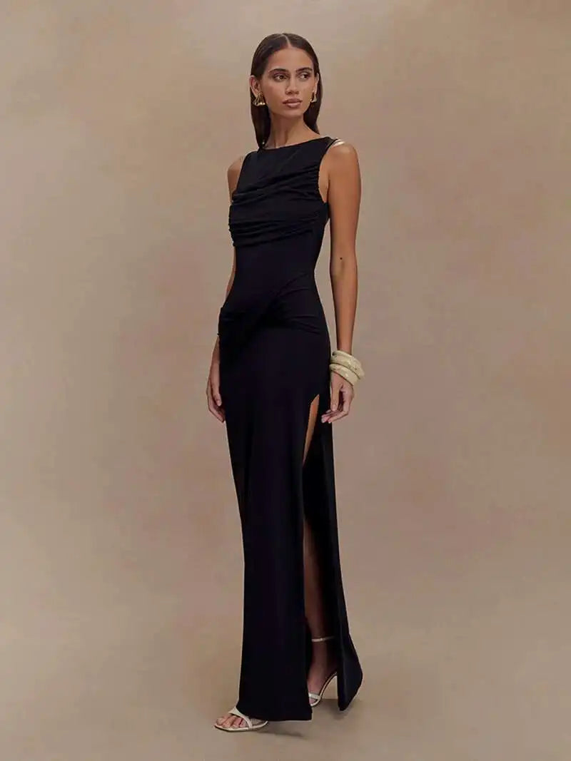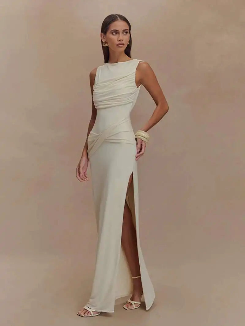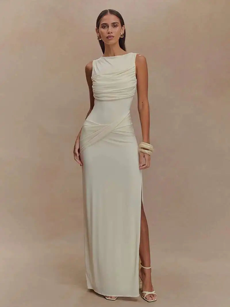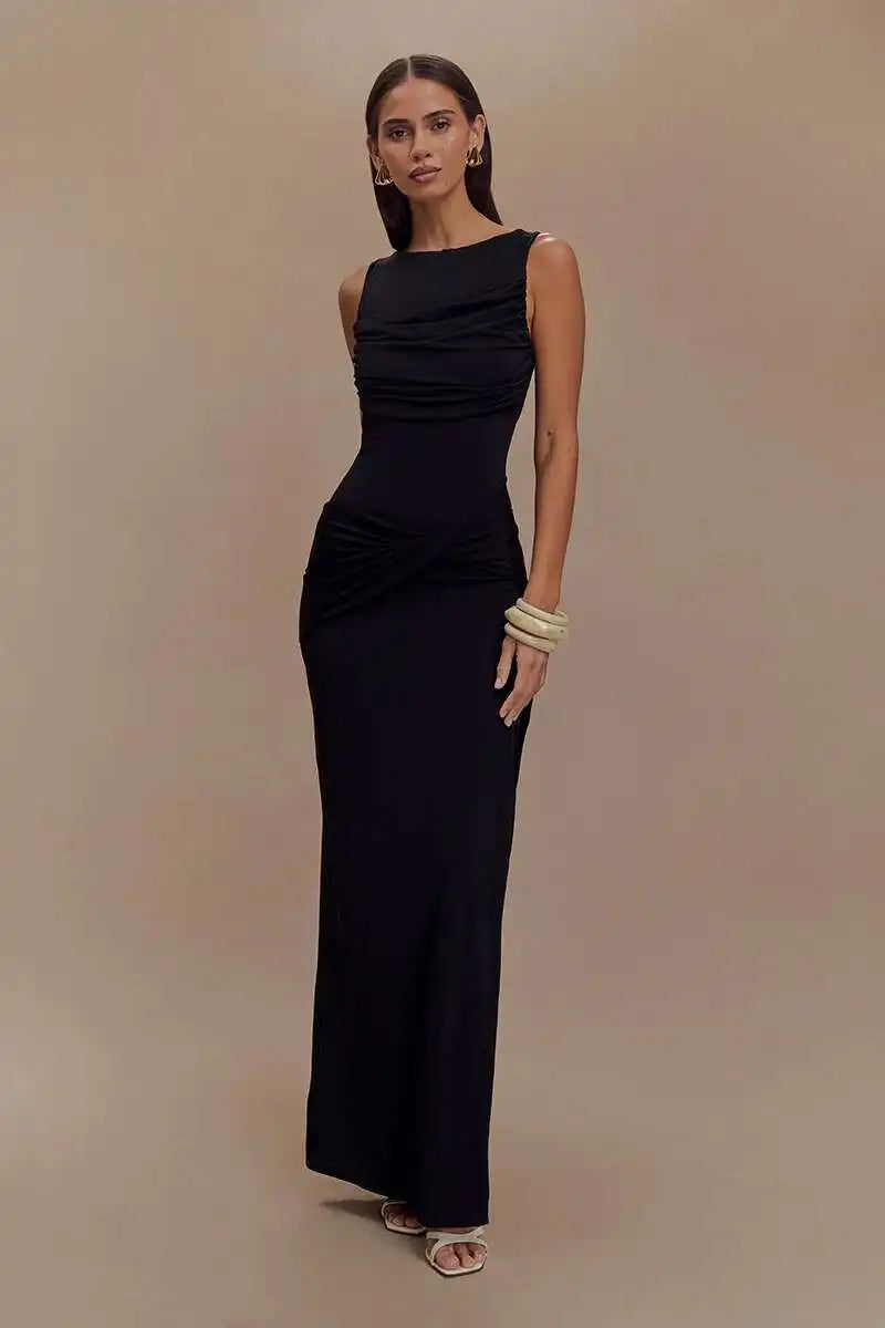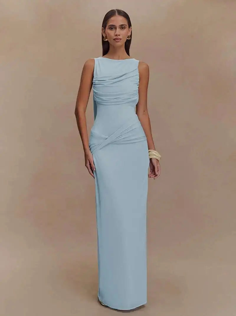 Sleeveless Pleated Bodycon Elegant Backless Maxi Dress Women
