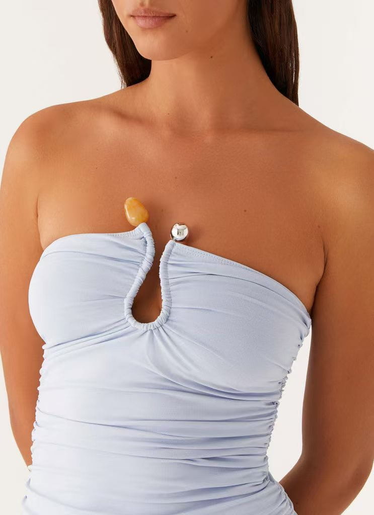 Slim-fit Pleated Solid Color Sheath Jumpsuit Skirt - Light Blue / L - electronic accessories