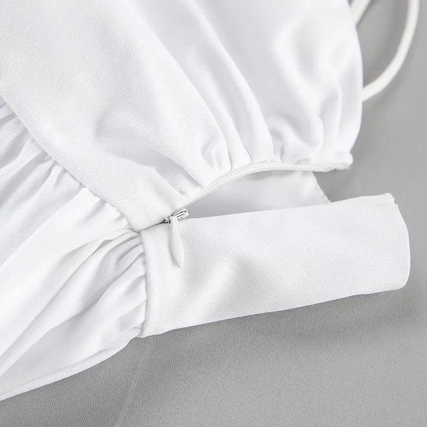 Suspenders Puff Mini Dress - White / L - Other
