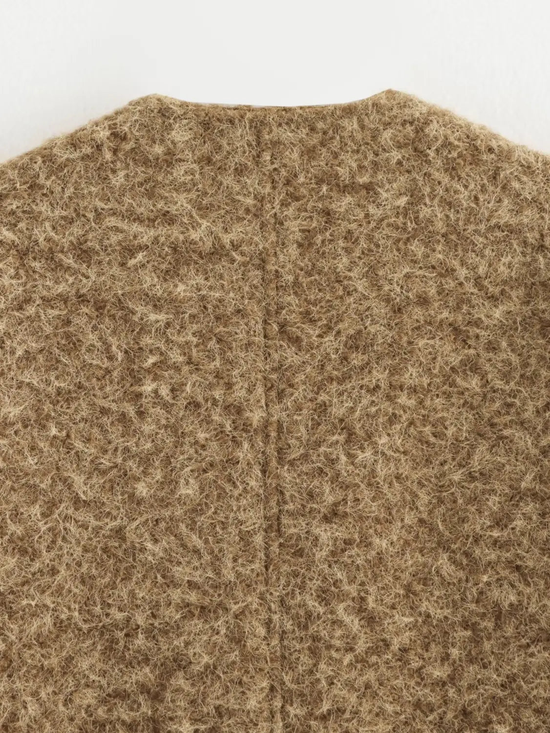 V-hals cardigan mote avslappet snøring ullfrakk kort frakk