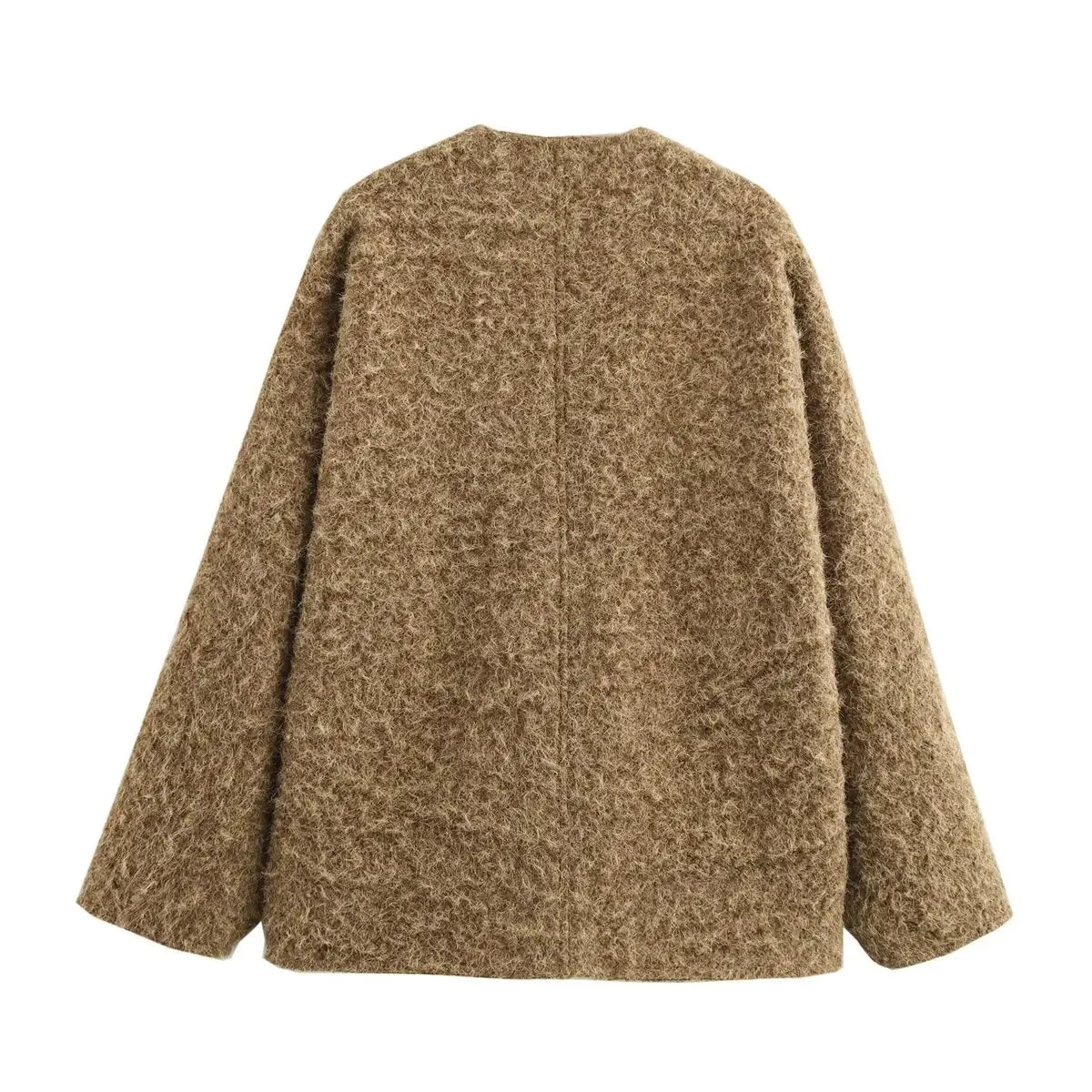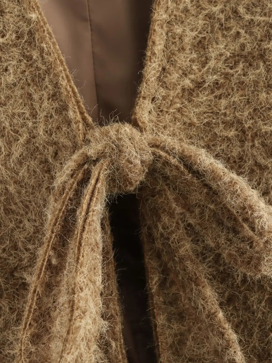 V-neck Cardigan Fashion Casual Lace Up Woolen Coat Short - Khaki / L - electronic accessories