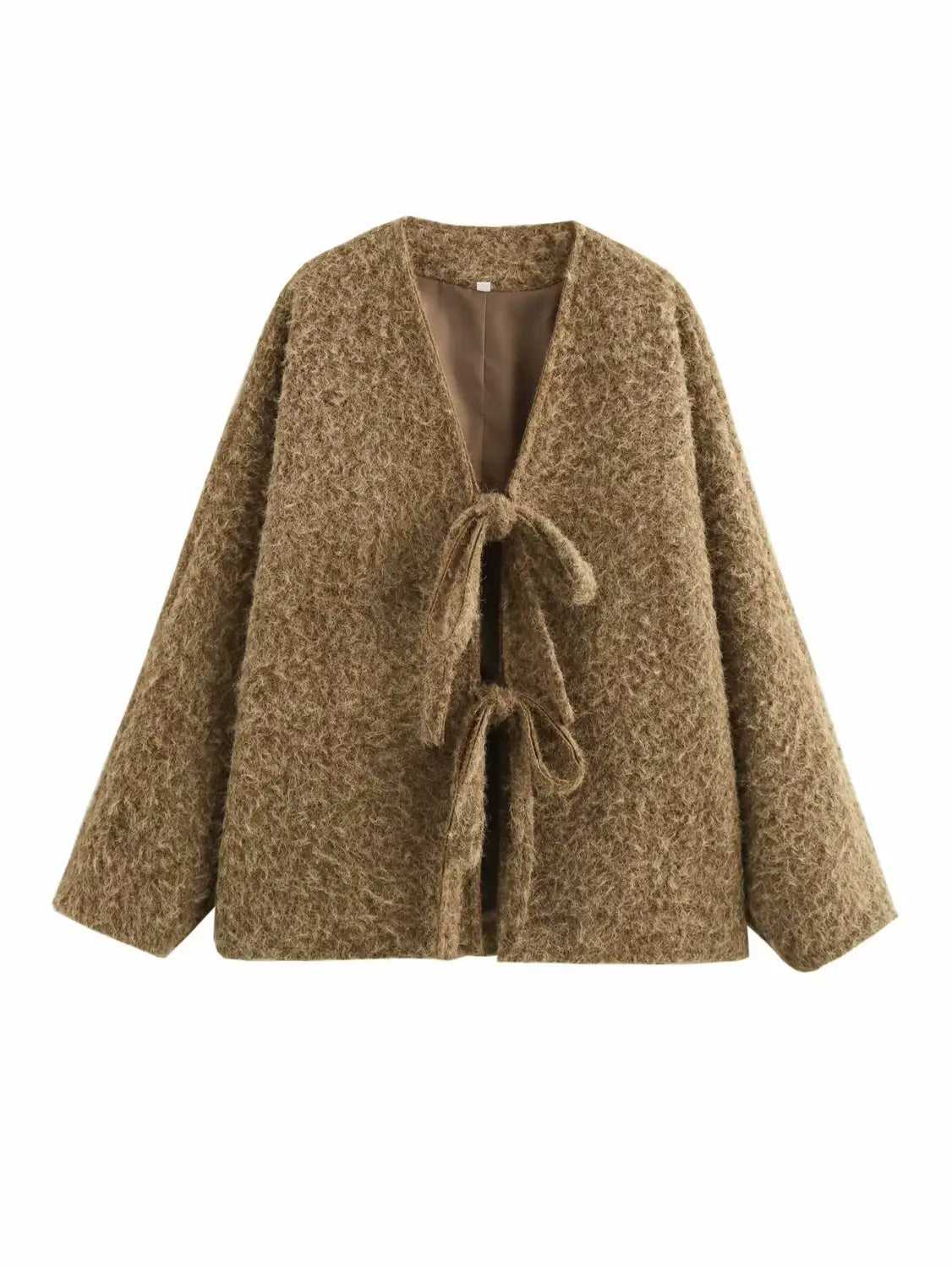 V-neck Cardigan Fashion Casual Lace Up Woolen Coat Short - electronic accessories