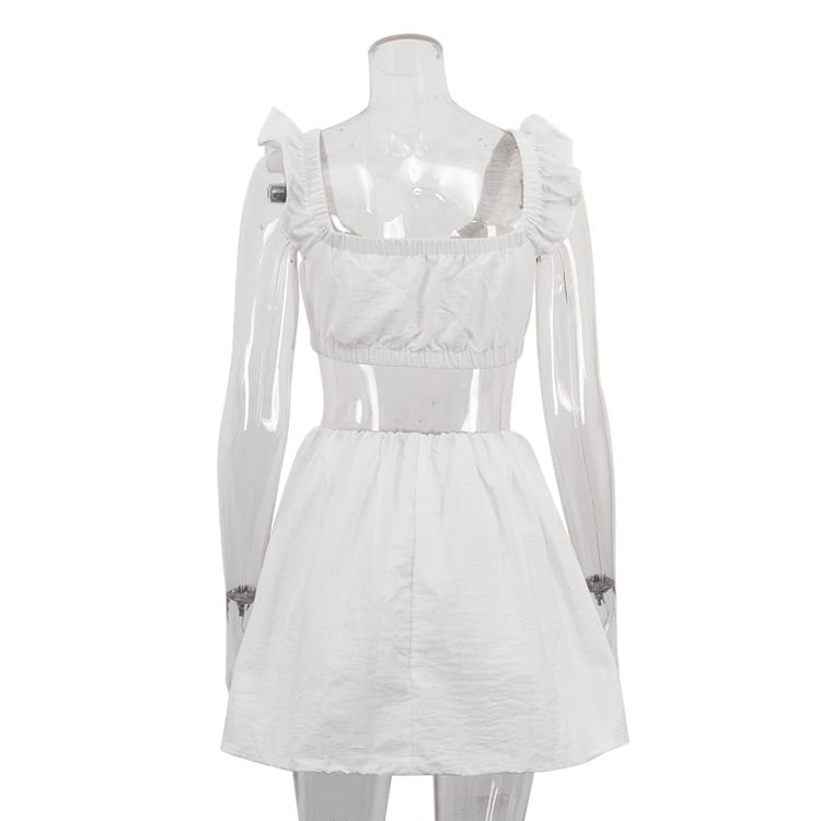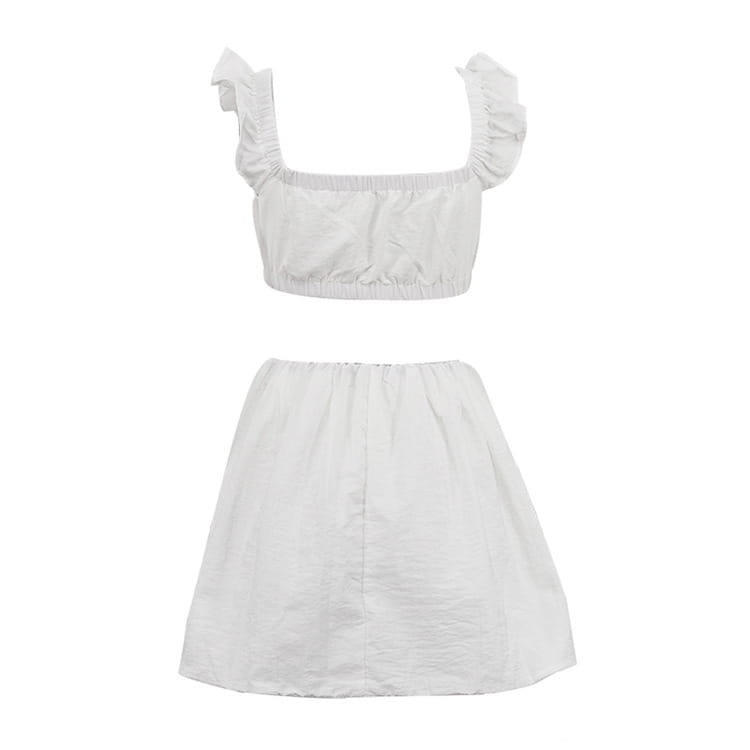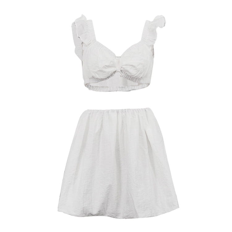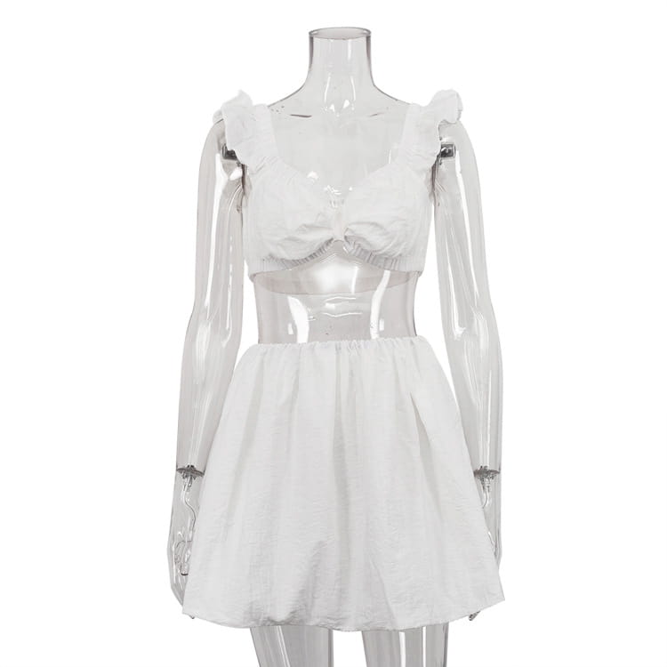 White Sleeveless Camisole High Waist Short Skirt Two-piece Set - electronic accessories