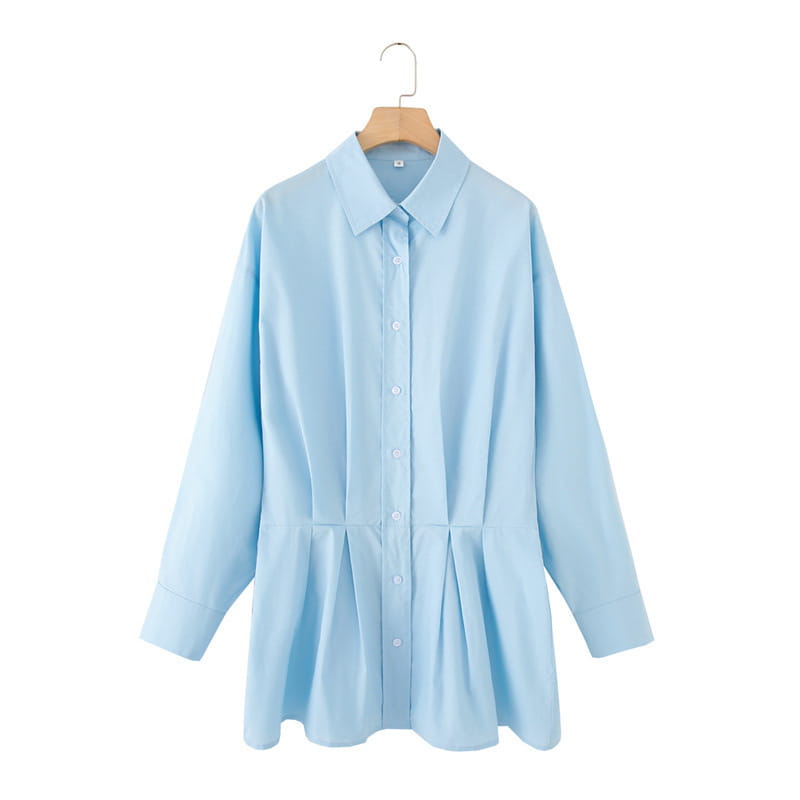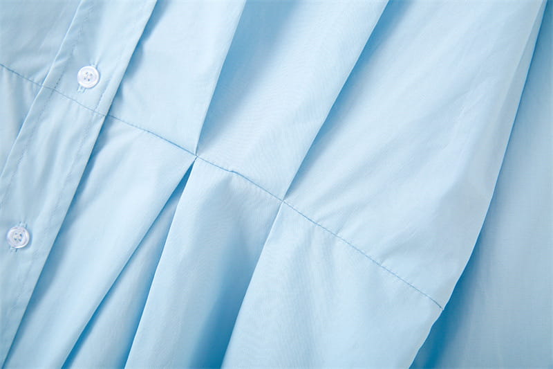 Wide Pleated Design Shirt Short Dress - Picture Color / L - Other