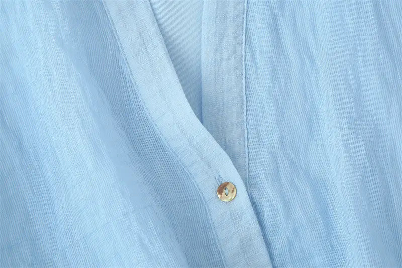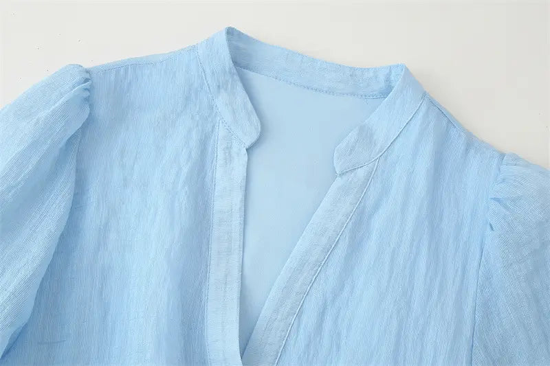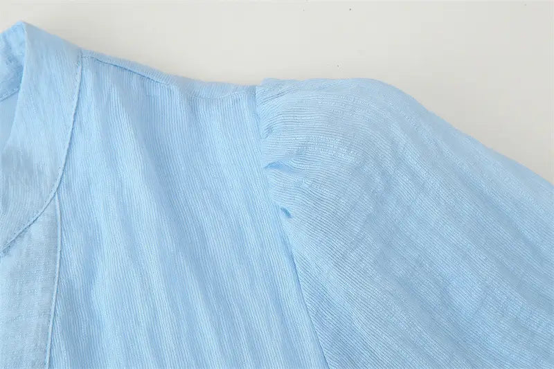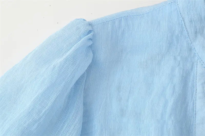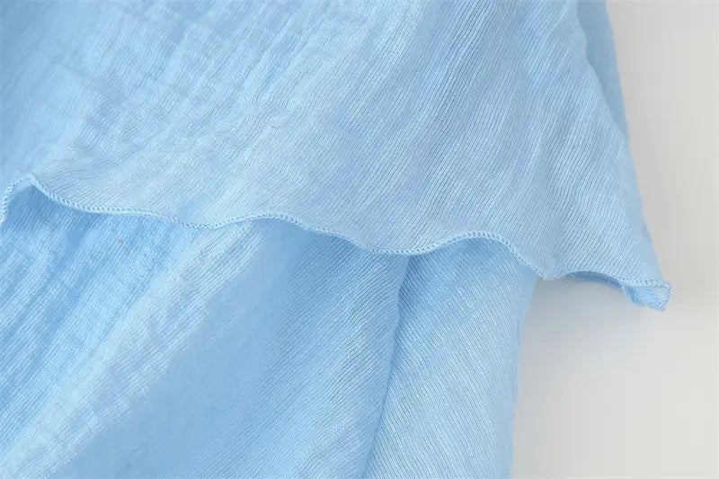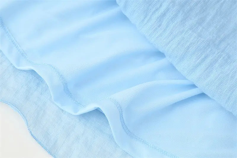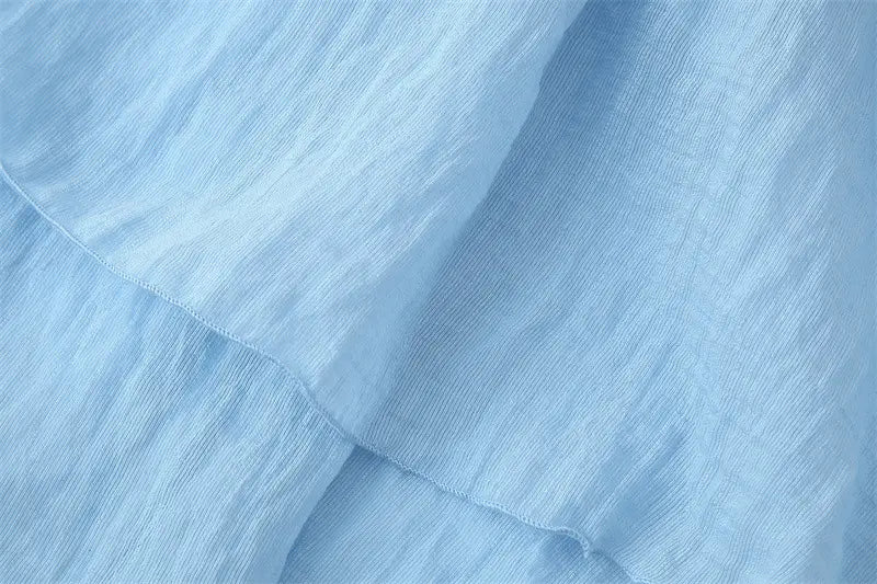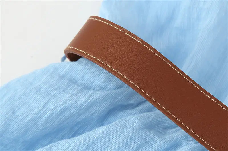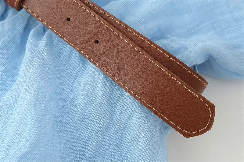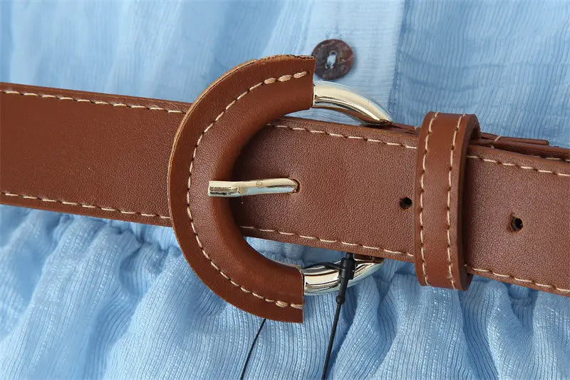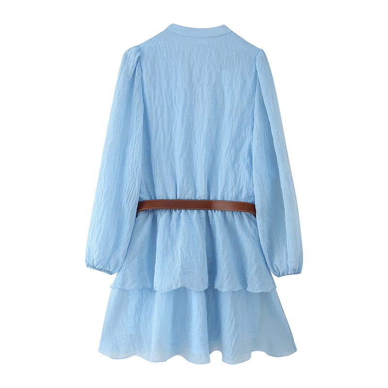 With Belt Laminated Decoration Dress - Blue / L - Other