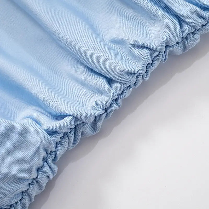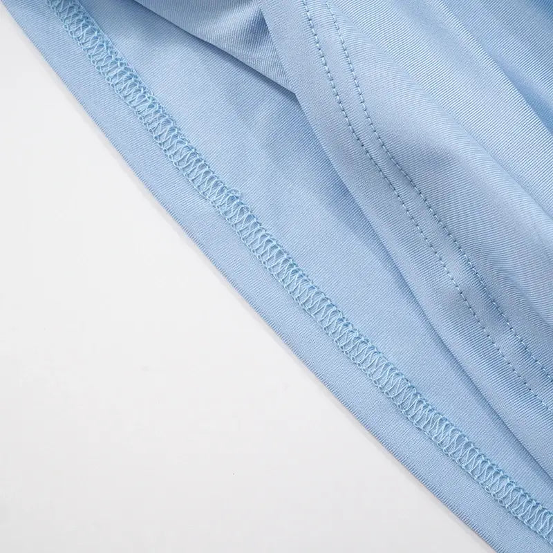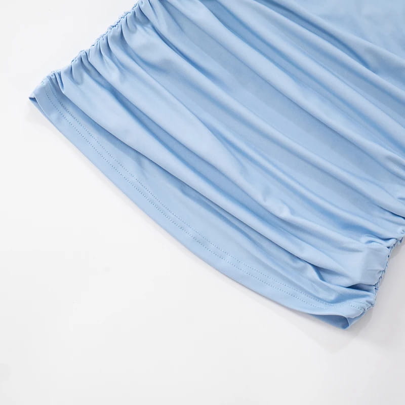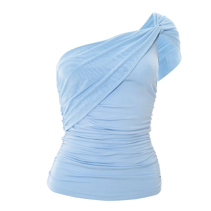 Women Elegant Slant Shoulder Twisted Mesh Patchwork Strapless Tank Top - Blue / L