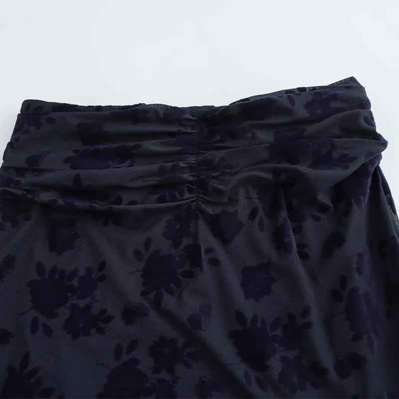 Motesett for kvinner i 2 deler med trykk og ryggløse tanktopper og vintage skjørt med elastisk midje