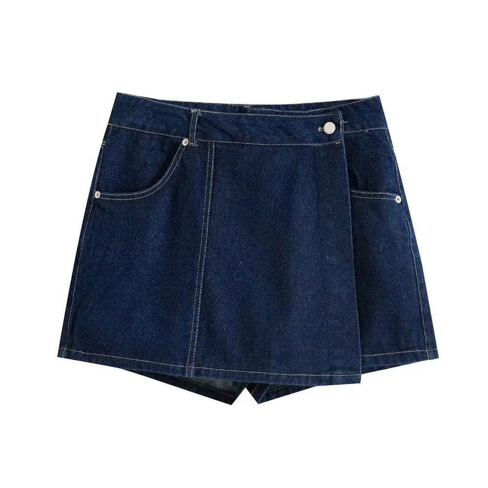 Women Fashion With Pockets Wrap Denim Shorts - as picture / M
