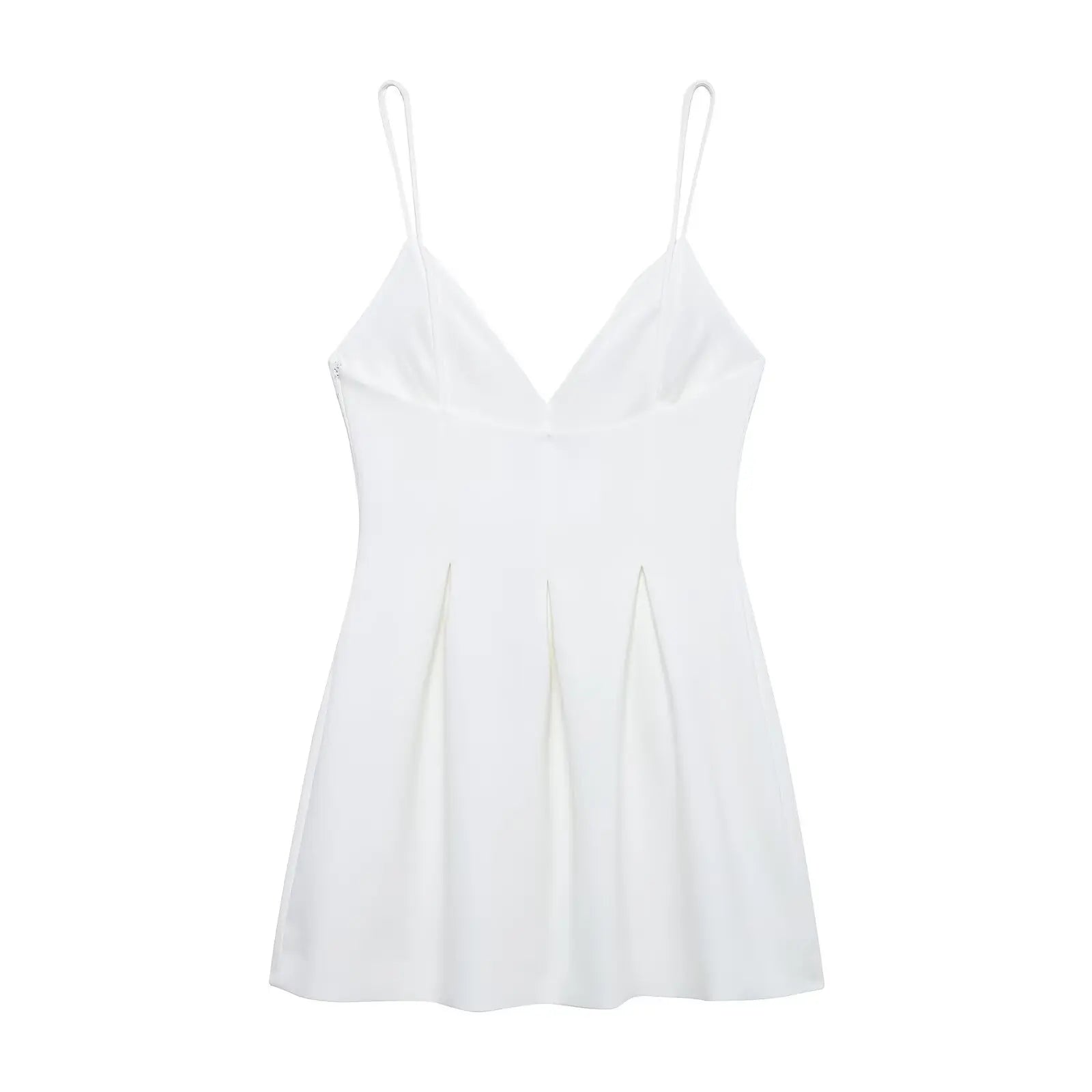 Women Summer High Street Sleeveless Solid Dress - white / XS