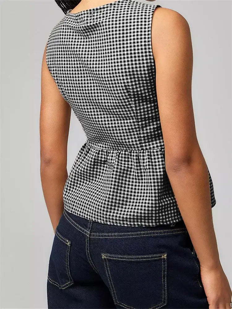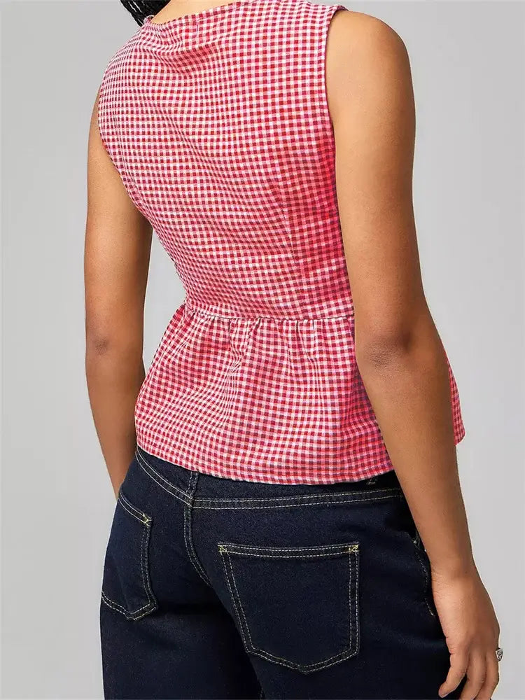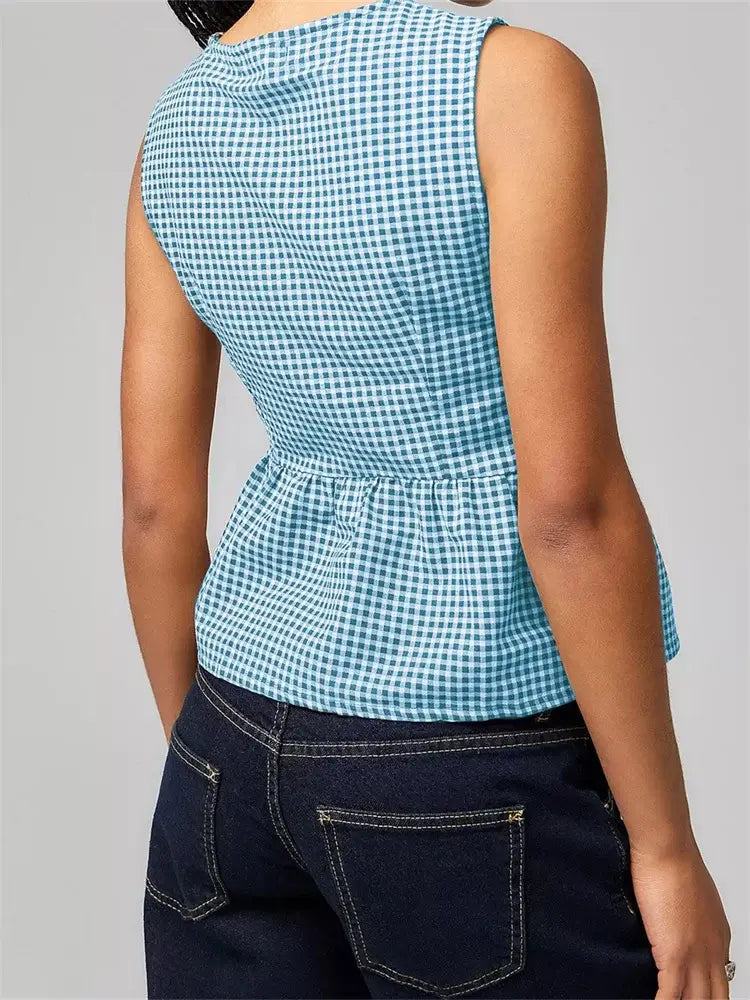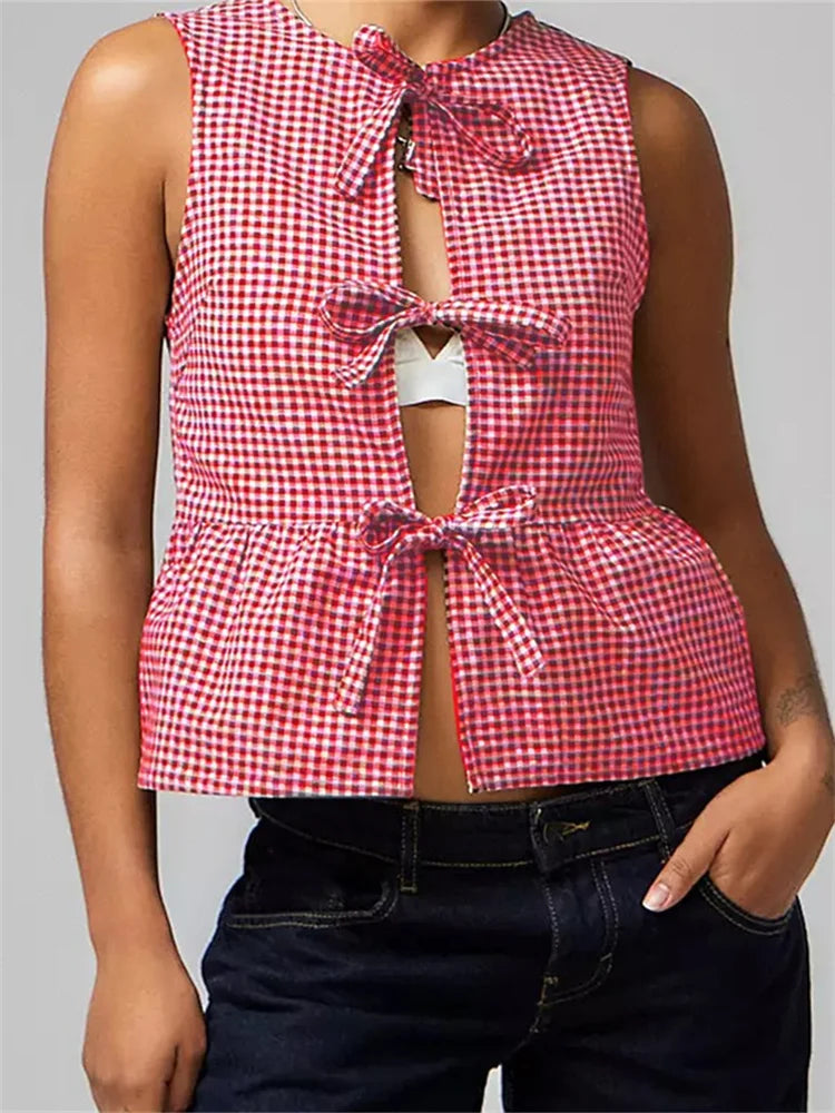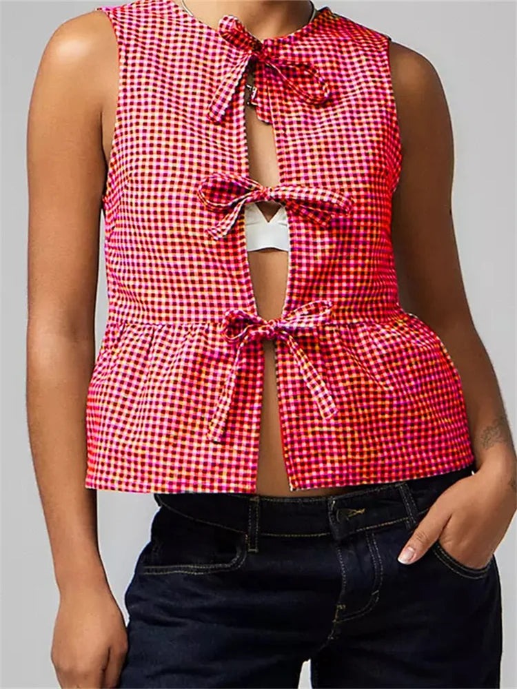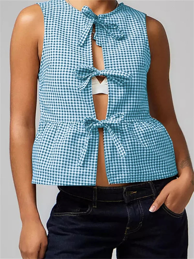 Women Tank Tops Sleeveless Round Neck Front Split Tie-up