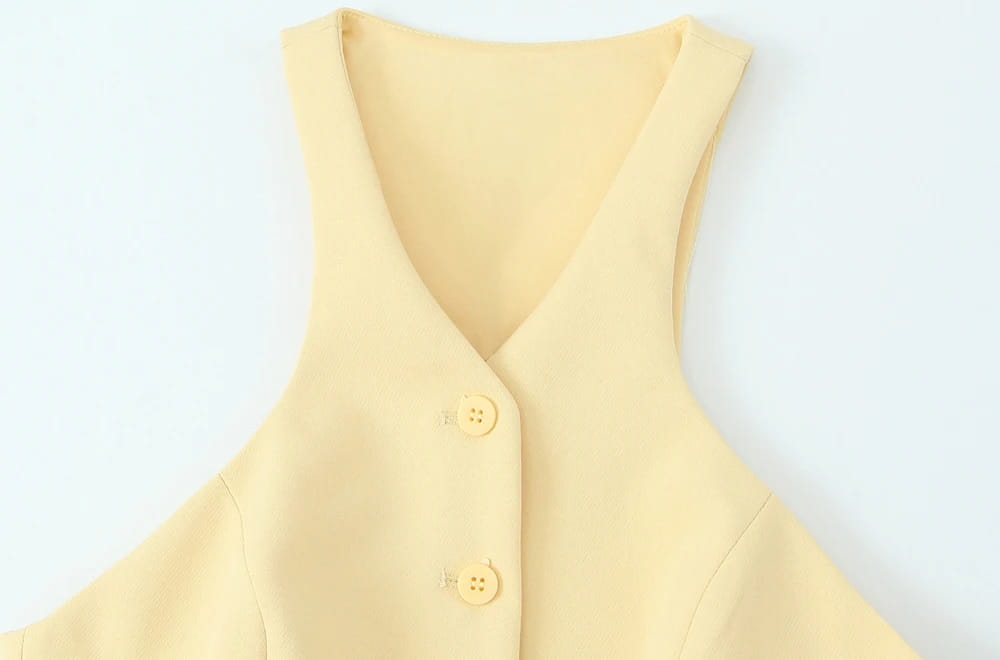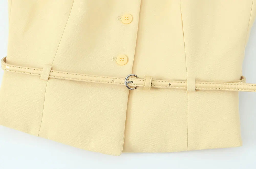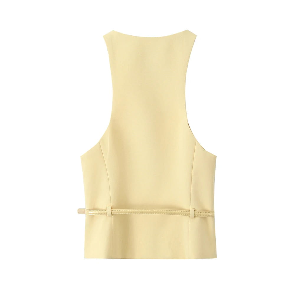 Women With Belt Front Button Tank Tops And High Waist Side Zipper Midi Skirt - Top / S