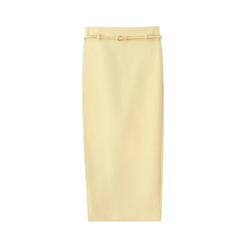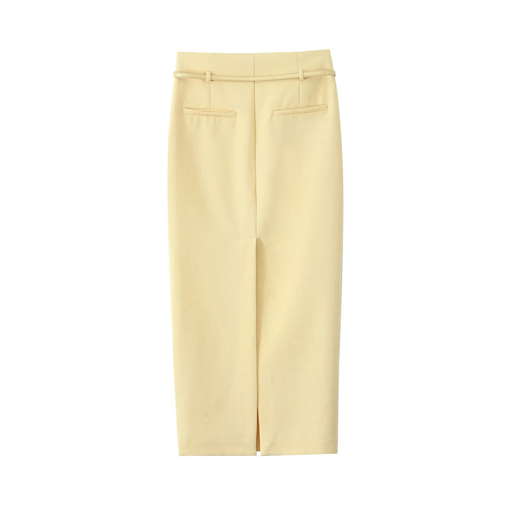 Women With Belt Front Button Tank Tops And High Waist Side Zipper Midi Skirt