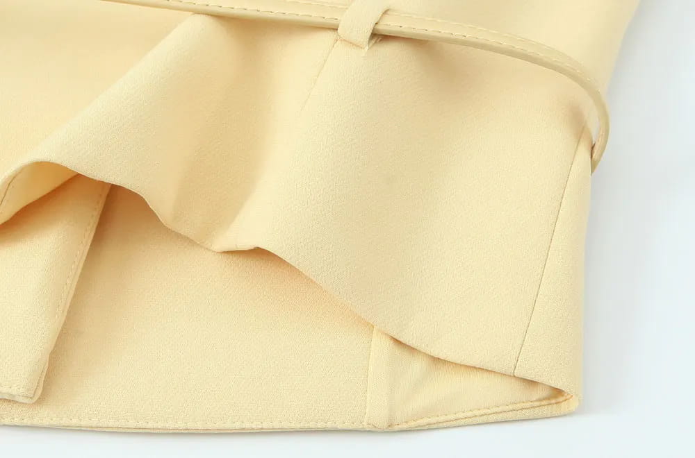 Women With Belt Front Button Tank Tops And High Waist Side Zipper Midi Skirt - S