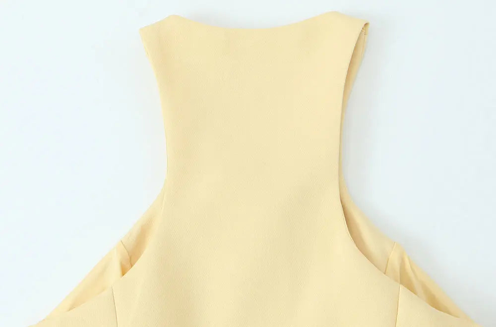 Damer med tanktopper med belte og knapper foran og midiskjørt med høy midje og glidelås på siden