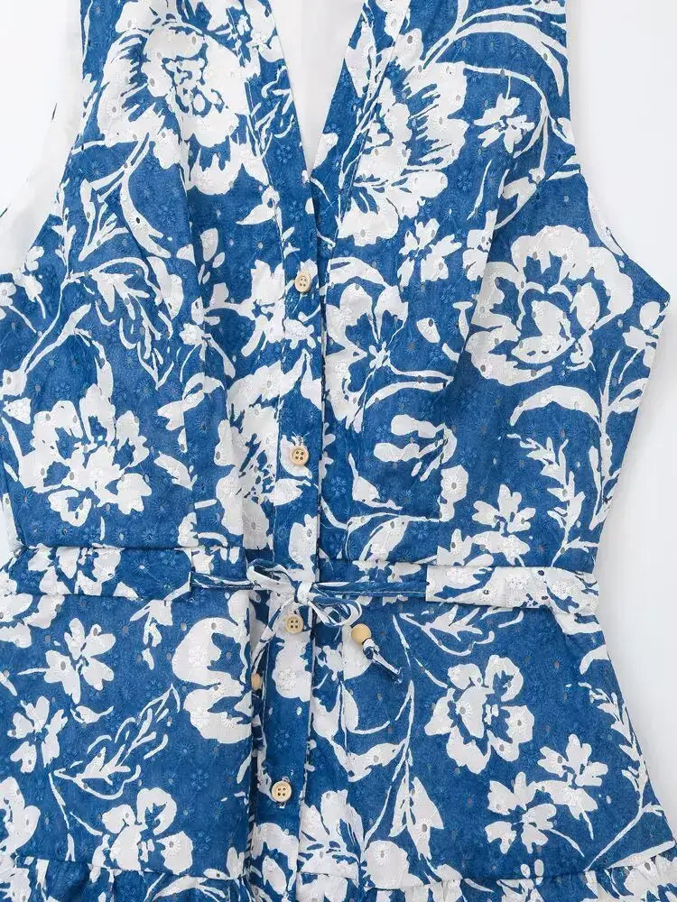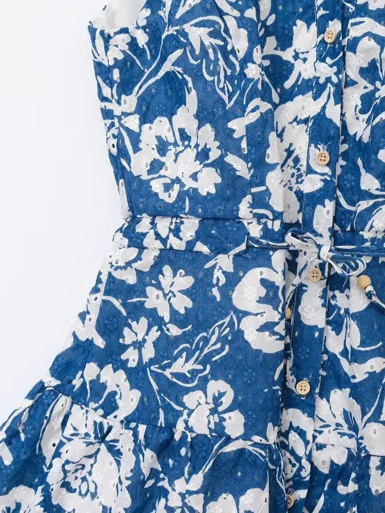 Women’s Lace-up Floral Print Mini Dress - Printed dress / M