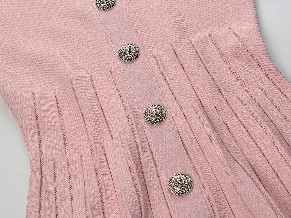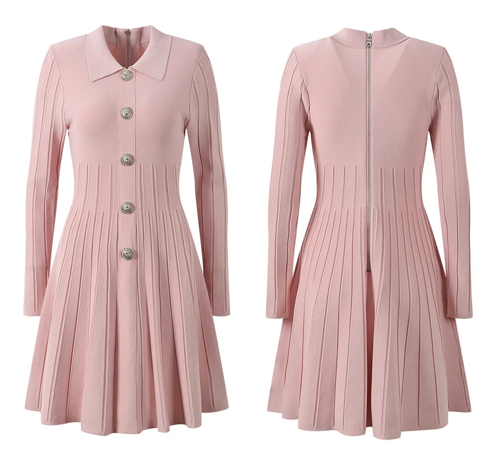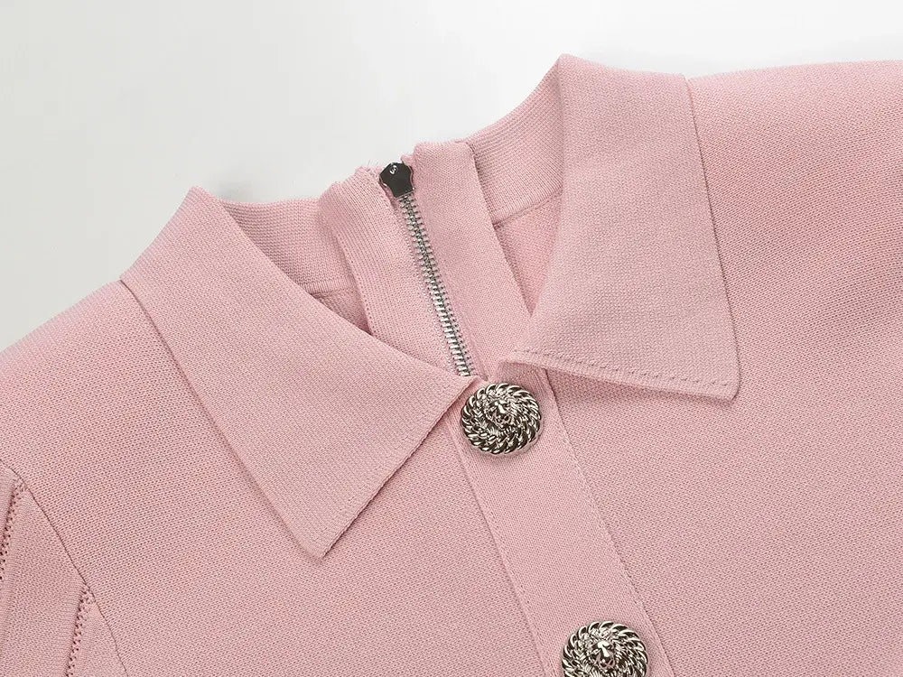 Women’s Lapel Beaded Button Short-sleeved Jumpsuit - Long sleeves pink / L