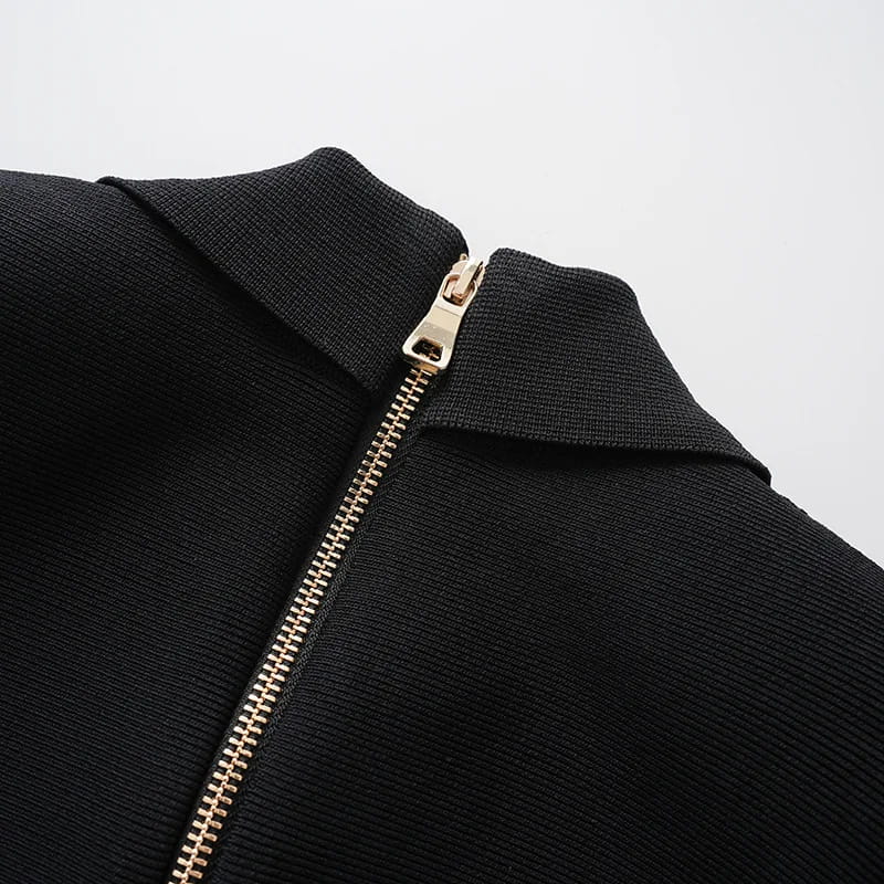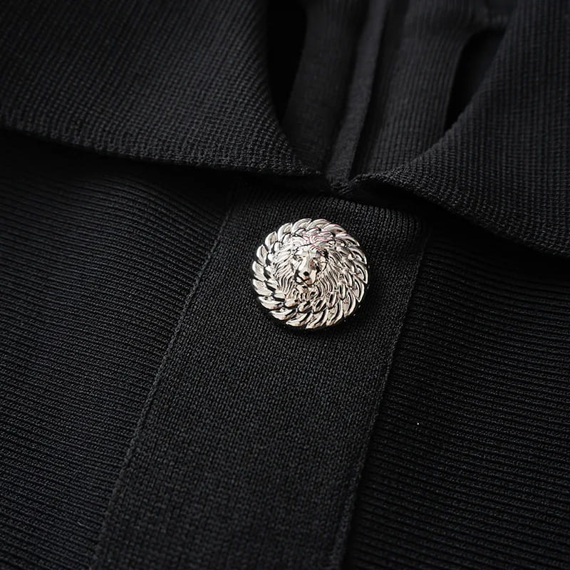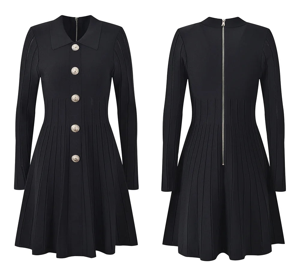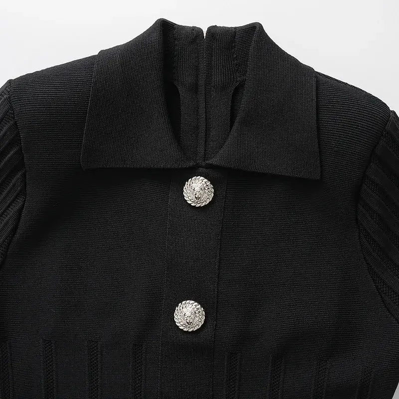 Women’s Lapel Beaded Button Short-sleeved Jumpsuit - Long sleeve black / S
