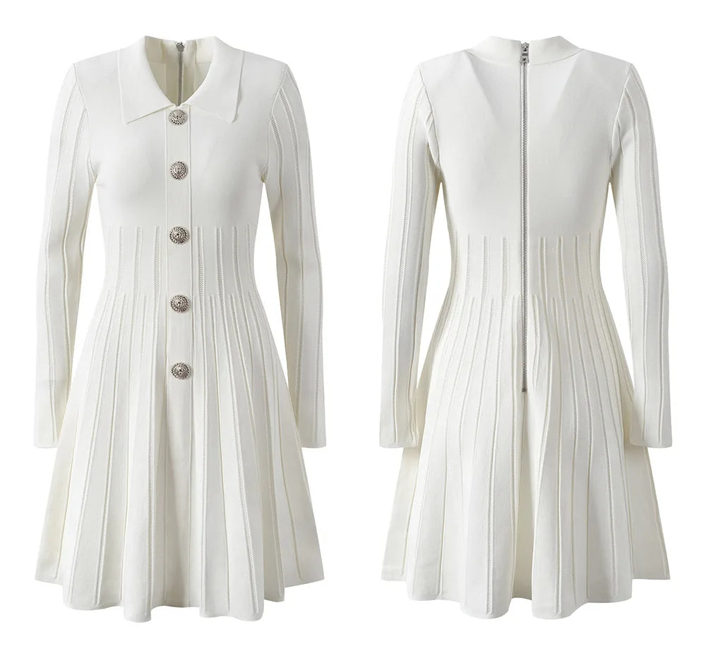 Women’s Lapel Beaded Button Short-sleeved Jumpsuit - Long sleeves white / S