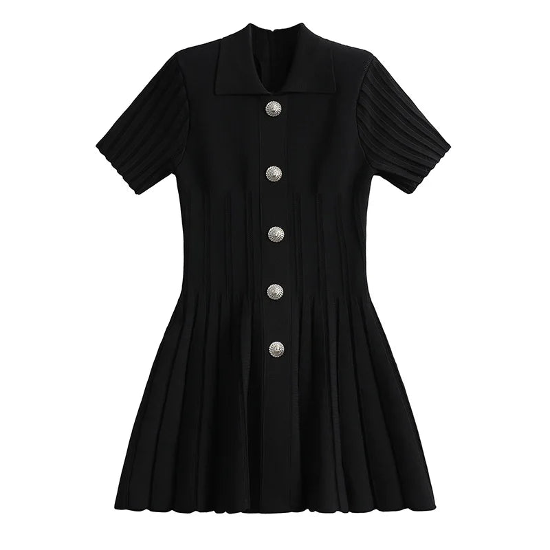Women’s Lapel Beaded Button Short-sleeved Jumpsuit
