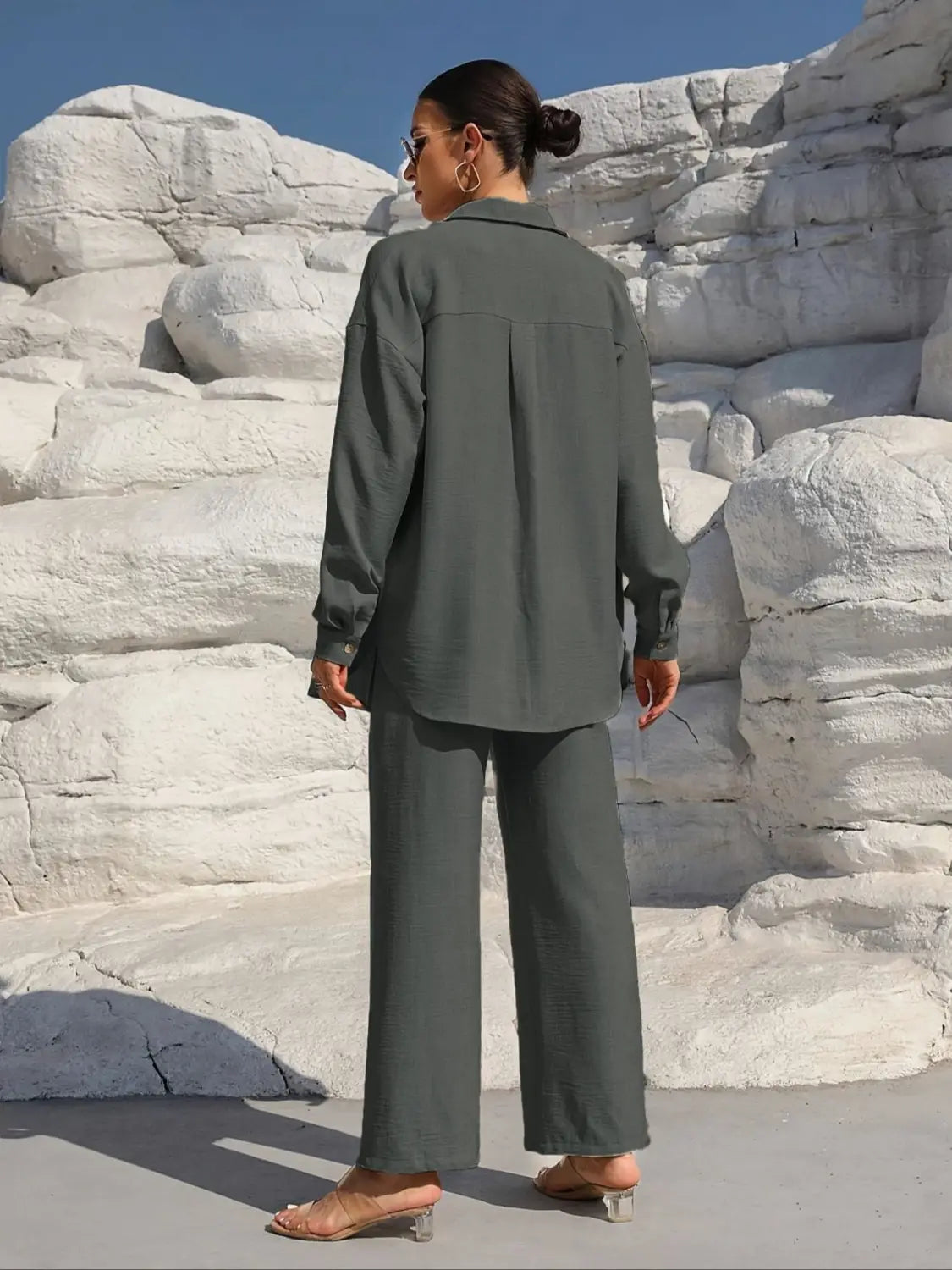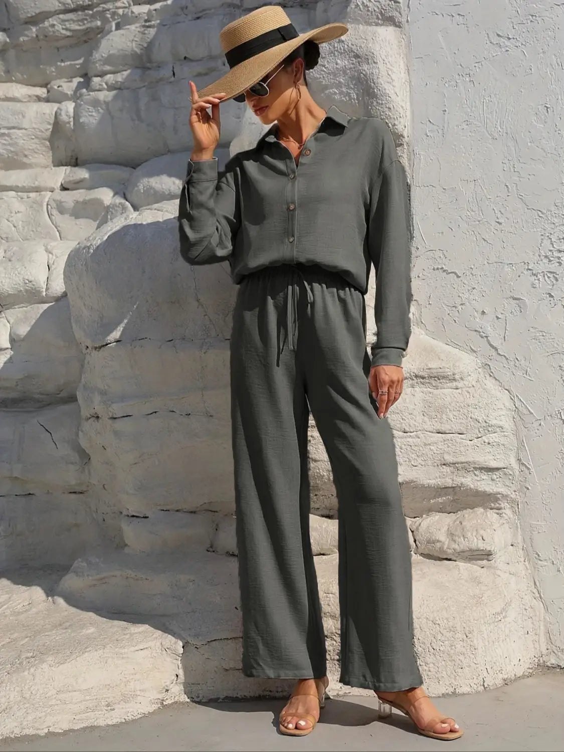 Women’s Long Sleeve Cardigan Two-Piece Set Casual Suit - Gray / L - electronic accessories