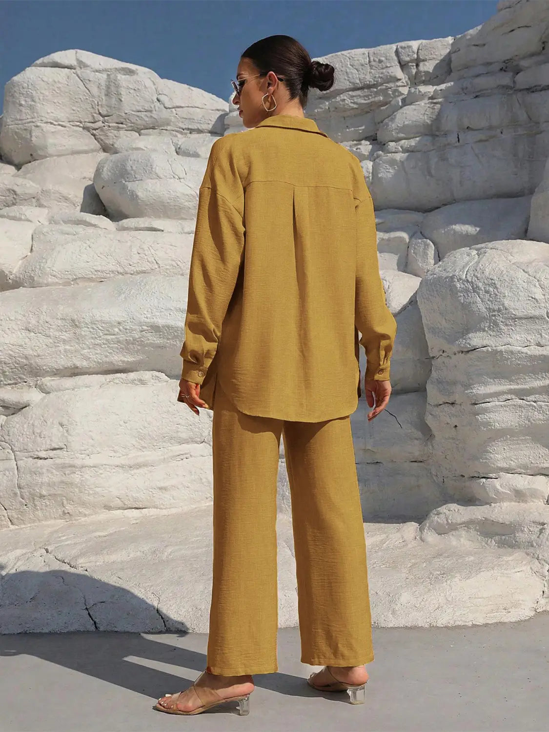 Women’s Long Sleeve Cardigan Two-Piece Set Casual Suit - Khaki / L - electronic accessories