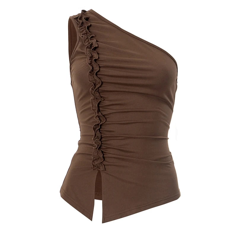 Women'S Single Shoulder Shrink Sleeveless Tank Tops