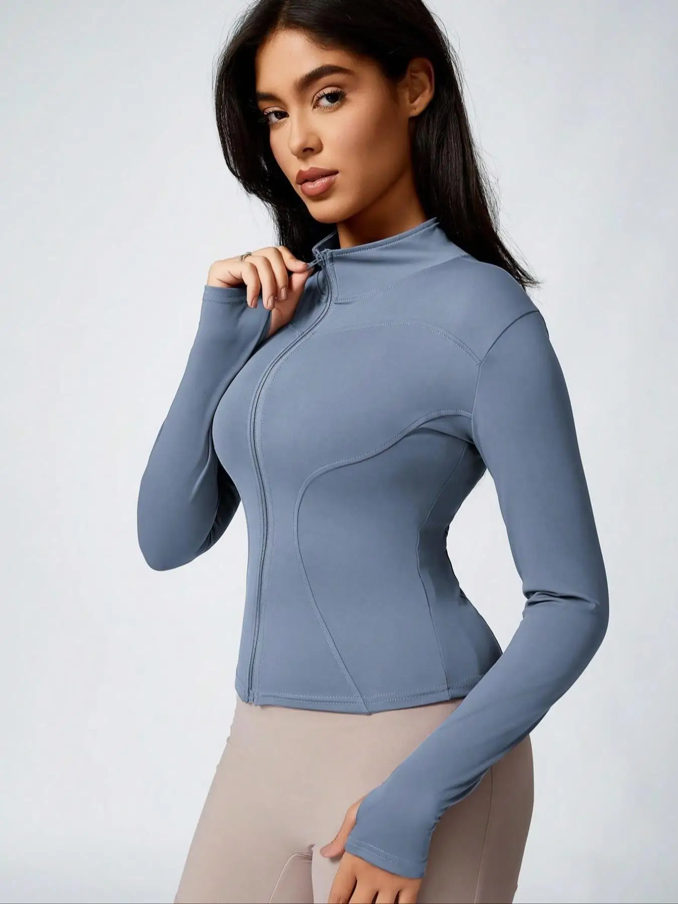 Dame Slim Fit Full Zip Langermet Hurtigtørkende Pustende Atletisk Treningsjakke